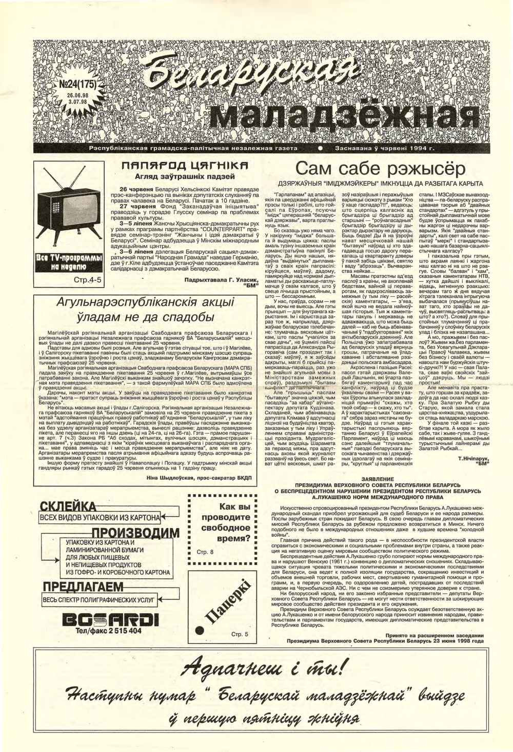 Беларуская маладзёжная 24 (175) 1998