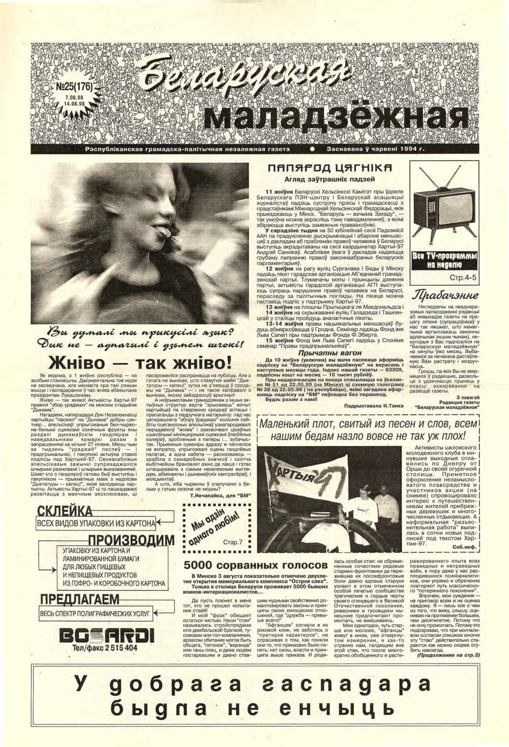 «Беларуская маладзёжная» (1994 - 2002) — беларуская газэта, дадатак да аднайменнай радыёстанцыі. Зарэгістраваная ў сакавіку 1994 году. У ёй друкаваліся расшыфроўкі радыйных гутарак, анонсы этэраў і ўсё, што не зьмяшчалася ў радыёфармат. Калі радыёстанцыю зачынілі, газэта засталася. Галоўны рэдактар — Тацьцяна Мельнічук. Традыцыйны фармат — 8 старонак А3. Газэта асьвятляла нараджэньне й разьвіцьцё палітычнай апазыцыі сярэдзіны-канца 1990-х, дзейнасьць незарэгістраваных моладзевых аб'яднаньняў з усіх бакоў палітычнага сьпектру, сачыла за разьвіцьцём й актуальным станам альтэрнатыўнай моладзевай культуры Беларусі. З 1995 па 1998 рэдакцыя газэты праводзіла у Менску вулічны рок-фэст «Купальле з Беларускай маладзёжнай». Апошні нумар выйшаў у чэрвені 2002 году. У кастрычніку 2003 году пасьведчаньне аб рэгістрацыі было скасаванае міністэрствам інфармацыі РБ. Крыница: be-tarask.wikipedia.org