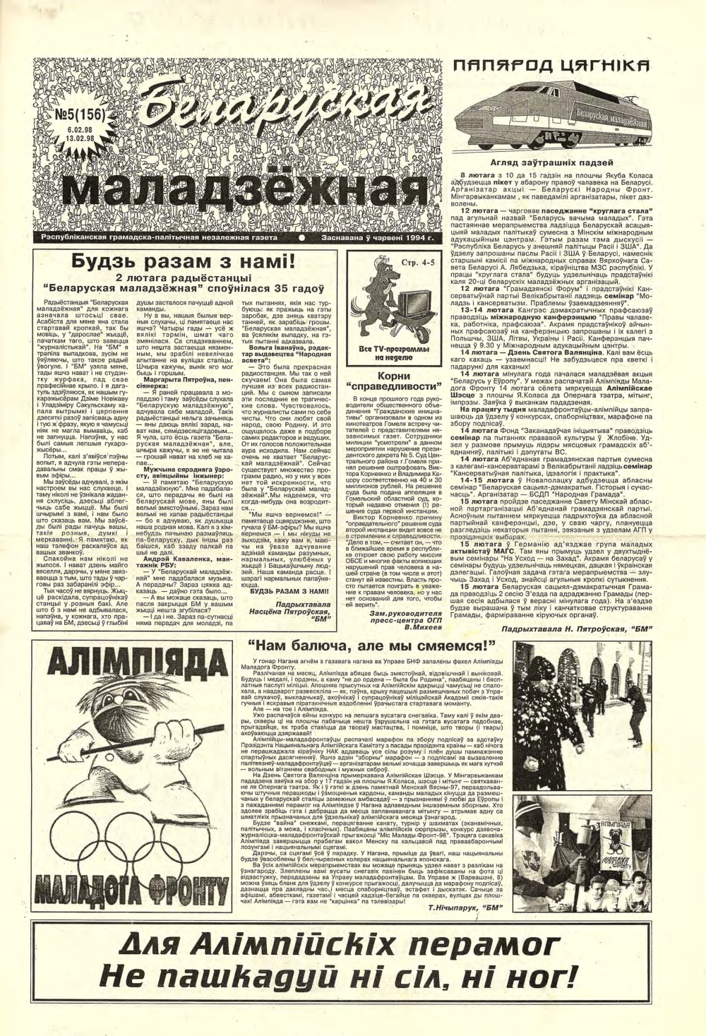 «Беларуская маладзёжная» (1994 - 2002) — беларуская газэта, дадатак да аднайменнай радыёстанцыі. Зарэгістраваная ў сакавіку 1994 году. У ёй друкаваліся расшыфроўкі радыйных гутарак, анонсы этэраў і ўсё, што не зьмяшчалася ў радыёфармат. Калі радыёстанцыю зачынілі, газэта засталася. Галоўны рэдактар — Тацьцяна Мельнічук. Традыцыйны фармат — 8 старонак А3. Газэта асьвятляла нараджэньне й разьвіцьцё палітычнай апазыцыі сярэдзіны-канца 1990-х, дзейнасьць незарэгістраваных моладзевых аб'яднаньняў з усіх бакоў палітычнага сьпектру, сачыла за разьвіцьцём й актуальным станам альтэрнатыўнай моладзевай культуры Беларусі. З 1995 па 1998 рэдакцыя газэты праводзіла у Менску вулічны рок-фэст «Купальле з Беларускай маладзёжнай». Апошні нумар выйшаў у чэрвені 2002 году. У кастрычніку 2003 году пасьведчаньне аб рэгістрацыі было скасаванае міністэрствам інфармацыі РБ. Крыница: be-tarask.wikipedia.org