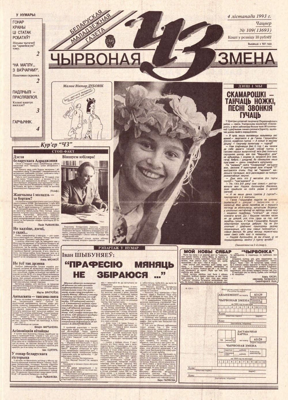 Чырвоная змена 109 (13693) 1993