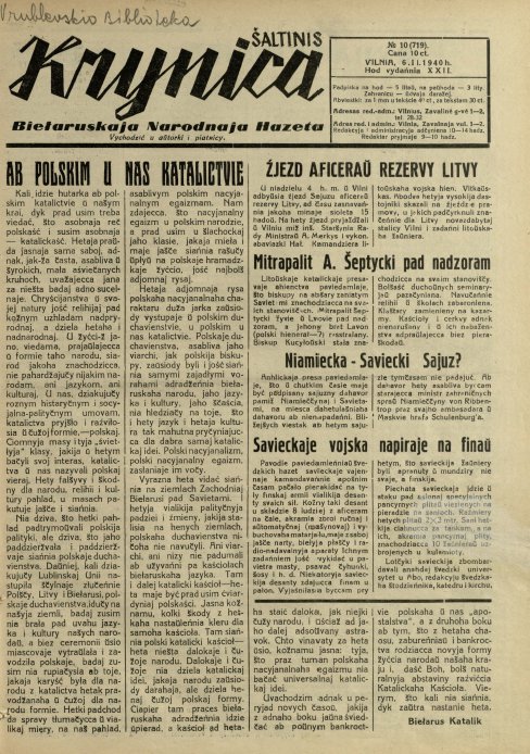 «Беларуская крыніца» («Крыніца» да 1925 і пасля 19 лістапада 1939) — штотыднёвая газета, орган Беларускай хрысціянскай дэмакратыі. Выдавалася на беларускай мове (то лацінкай, то кірыліцай, то двума шрыфтамі адначасова — 1934—1939), у Петраградзе (з 21 красавіка 1917), у Вільні (7 верасня 1919 — 12 ліпеня 1940, не выходзіла: 15 красавіка 1937 — 16 лістапада 1939), у Мінску (#3, 1918). Выйшлі 768 нумароў. У першай палове 1920-х канфіскавана 9 нумароў, за перыяд выдання ў Вільні канфіскавана 58 нумароў. Прапагандавала ідэю адраджэння царкоўнай уніі, увядзення беларускай мовы ў каталіцкай царкве, кансалідавала вакол сябе беларусаў-католікаў. Рэдактарамі ў розны час былі Т. Вайцяховіч, В. Васілеўскі, В. Грыневіч, М. Грачанік, У. Знамяроўскі, Я. Пазняк, А. Станкевіч, Л. Сярмяга, Б. Туронак.Крыніца: be.wikipedia.org