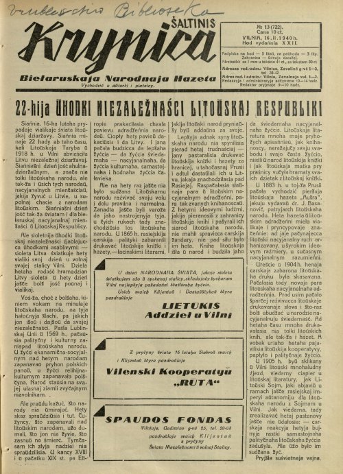• Выдавецтва/ друкарня: Biełaruskaja Drukarnia im. Fr. Skaryny