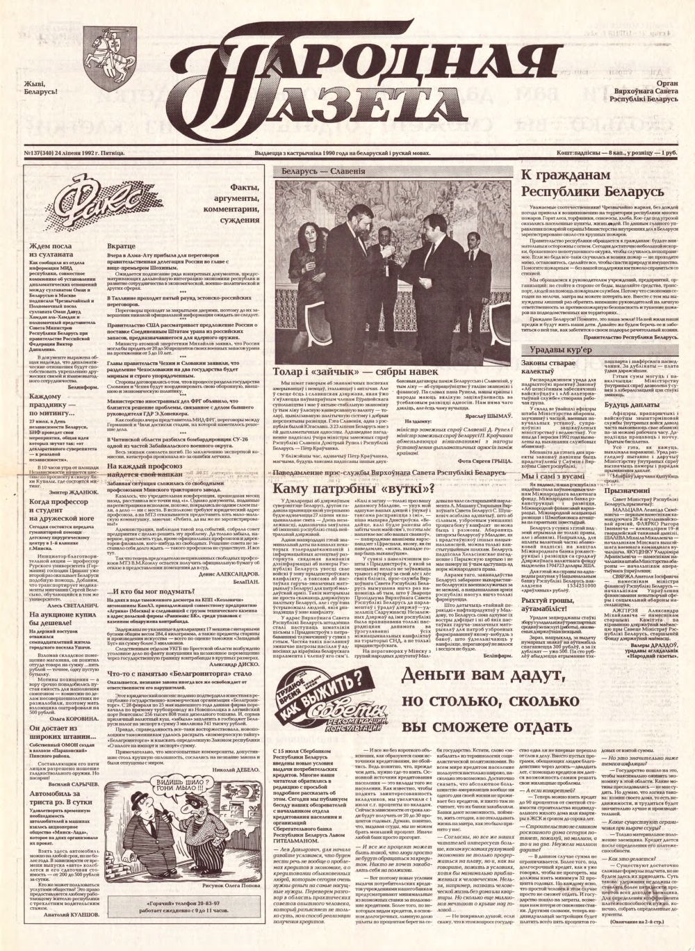 «Народная газета» — орган Вярхоўнага Савета Рэспублікі Беларусь. Выдавец: Адкрытае акцыянернае таварыства Народная газета. Выходзіць штодзённа, акрамя нядзелі і панядзелка, 250 разоў у год. Выдаецца з кастрычніка 1990 года на беларускай і рускай мовах. З 1990 па 1995 год пасаду галоўнага рэдактара «Народнай газеты» займаў Іосіф Сярэдзіч. З мая 1990 па студзень 1996 — дэпутат Вярхоўнага Савета XII склікання. Выданне займала ўмераную цэнтрысцкую пазыцыю, імкнучыся адлюстраваць палітычныя погляды большасці грамадзян. 17 сакавіка 1995 г. Указам № 113 Аляксандр Лукашэнка прызначыў галоўным рэдактарам «Народнай газеты» Мікалая Галко, не зважаючы на тое, што правам прызначаць галоўнага рэдактара сваёй уласнай газеты валодаў толькі Вярхоўны савет.
