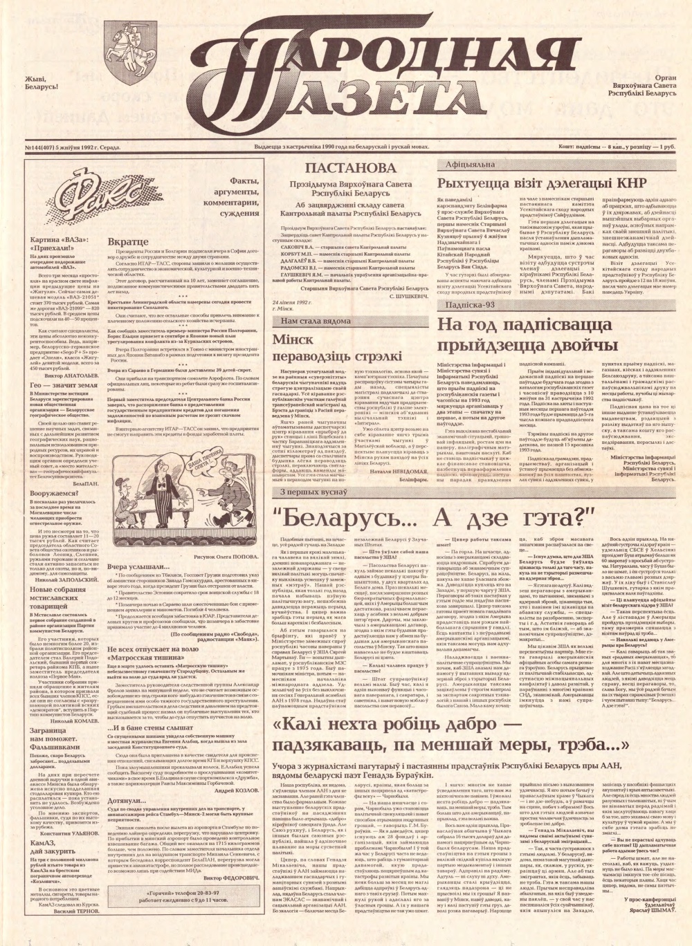 Народная газета 144 (407) 1992