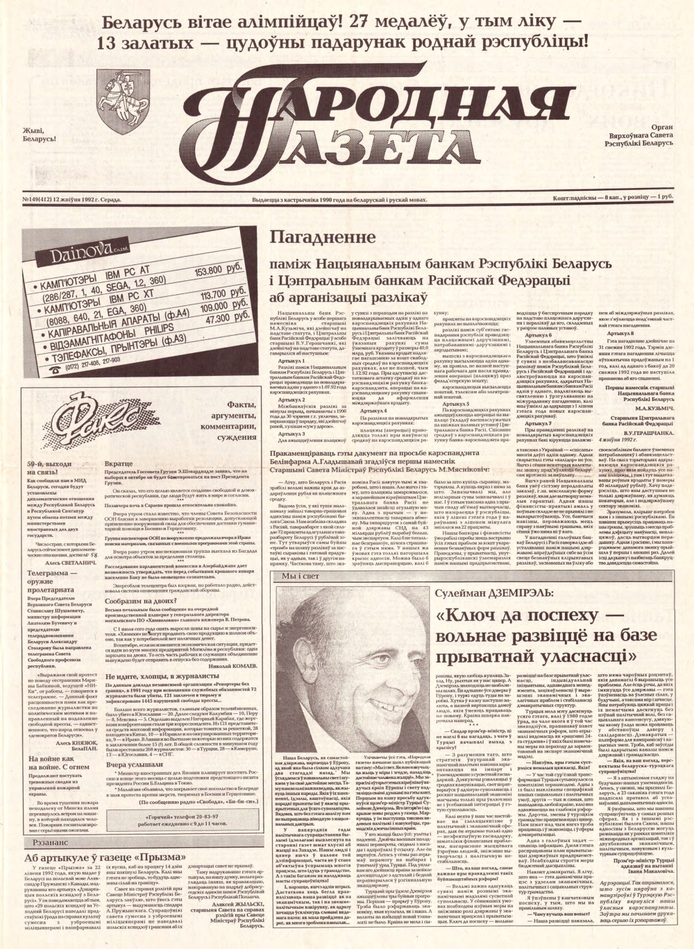 «Народная газета» — орган Вярхоўнага Савета Рэспублікі Беларусь. Выдавец: Адкрытае акцыянернае таварыства Народная газета. Выходзіць штодзённа, акрамя нядзелі і панядзелка, 250 разоў у год. Выдаецца з кастрычніка 1990 года на беларускай і рускай мовах. З 1990 па 1995 год пасаду галоўнага рэдактара «Народнай газеты» займаў Іосіф Сярэдзіч. З мая 1990 па студзень 1996 — дэпутат Вярхоўнага Савета XII склікання. Выданне займала ўмераную цэнтрысцкую пазыцыю, імкнучыся адлюстраваць палітычныя погляды большасці грамадзян. 17 сакавіка 1995 г. Указам № 113 Аляксандр Лукашэнка прызначыў галоўным рэдактарам «Народнай газеты» Мікалая Галко, не зважаючы на тое, што правам прызначаць галоўнага рэдактара сваёй уласнай газеты валодаў толькі Вярхоўны савет.