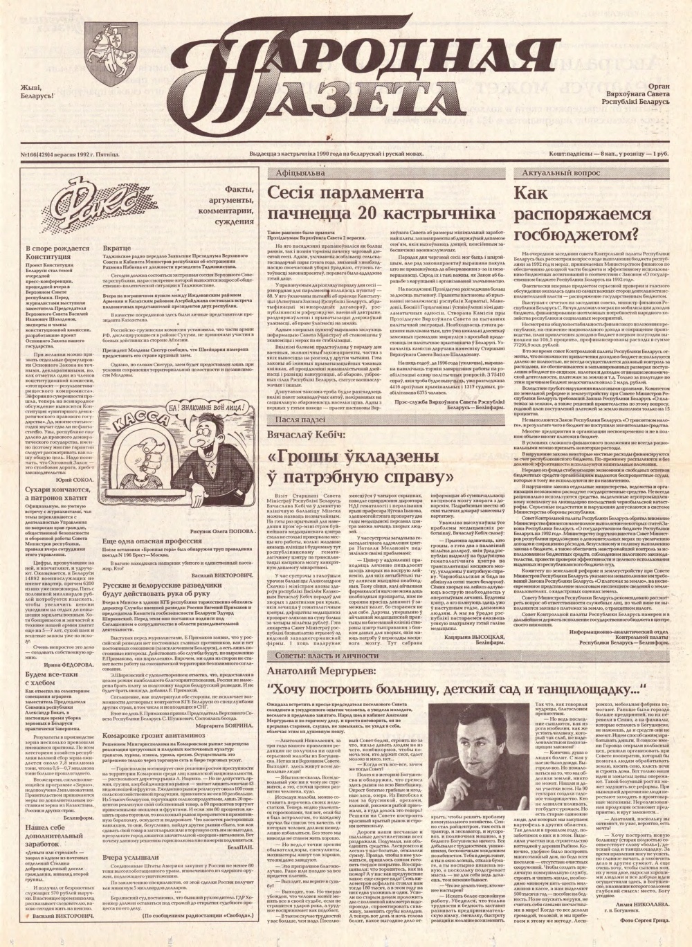 «Народная газета» — орган Вярхоўнага Савета Рэспублікі Беларусь. Выдавец: Адкрытае акцыянернае таварыства Народная газета. Выходзіць штодзённа, акрамя нядзелі і панядзелка, 250 разоў у год. Выдаецца з кастрычніка 1990 года на беларускай і рускай мовах. З 1990 па 1995 год пасаду галоўнага рэдактара «Народнай газеты» займаў Іосіф Сярэдзіч. З мая 1990 па студзень 1996 — дэпутат Вярхоўнага Савета XII склікання. Выданне займала ўмераную цэнтрысцкую пазыцыю, імкнучыся адлюстраваць палітычныя погляды большасці грамадзян. 17 сакавіка 1995 г. Указам № 113 Аляксандр Лукашэнка прызначыў галоўным рэдактарам «Народнай газеты» Мікалая Галко, не зважаючы на тое, што правам прызначаць галоўнага рэдактара сваёй уласнай газеты валодаў толькі Вярхоўны савет.