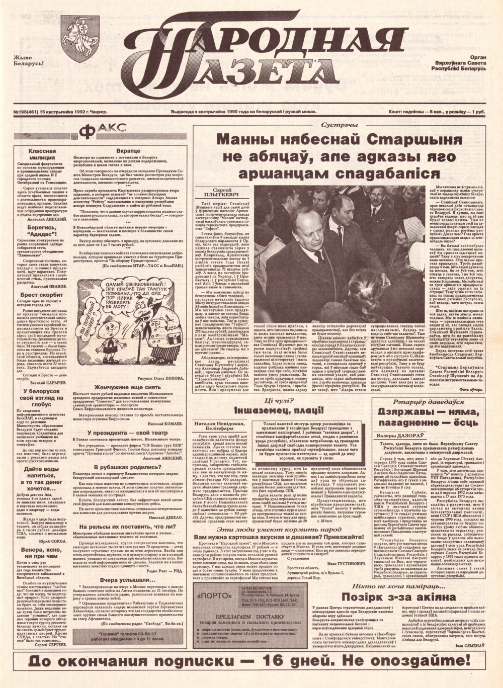 Народная газета 198 (461) 1992