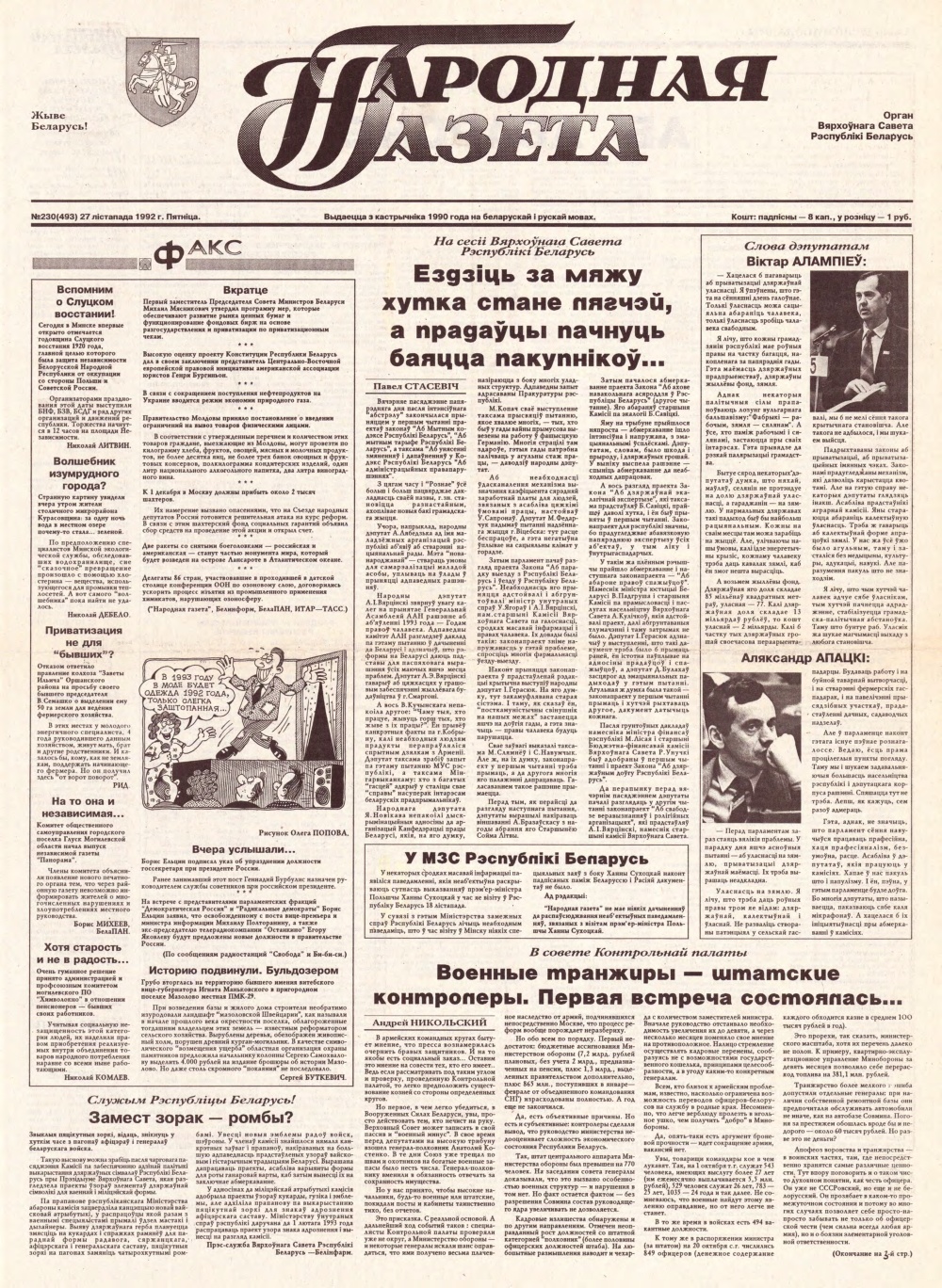 «Народная газета» — орган Вярхоўнага Савета Рэспублікі Беларусь. Выдавец: Адкрытае акцыянернае таварыства Народная газета. Выходзіць штодзённа, акрамя нядзелі і панядзелка, 250 разоў у год. Выдаецца з кастрычніка 1990 года на беларускай і рускай мовах. З 1990 па 1995 год пасаду галоўнага рэдактара «Народнай газеты» займаў Іосіф Сярэдзіч. З мая 1990 па студзень 1996 — дэпутат Вярхоўнага Савета XII склікання. Выданне займала ўмераную цэнтрысцкую пазыцыю, імкнучыся адлюстраваць палітычныя погляды большасці грамадзян. 17 сакавіка 1995 г. Указам № 113 Аляксандр Лукашэнка прызначыў галоўным рэдактарам «Народнай газеты» Мікалая Галко, не зважаючы на тое, што правам прызначаць галоўнага рэдактара сваёй уласнай газеты валодаў толькі Вярхоўны савет.