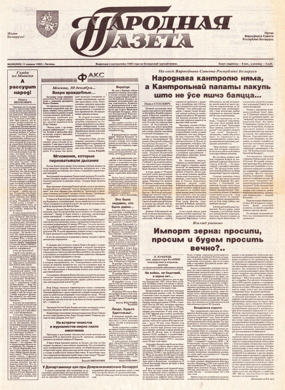 «Народная газета» — орган Вярхоўнага Савета Рэспублікі Беларусь. Выдавец: Адкрытае акцыянернае таварыства Народная газета. Выходзіць штодзённа, акрамя нядзелі і панядзелка, 250 разоў у год. Выдаецца з кастрычніка 1990 года на беларускай і рускай мовах. З 1990 па 1995 год пасаду галоўнага рэдактара «Народнай газеты» займаў Іосіф Сярэдзіч. З мая 1990 па студзень 1996 — дэпутат Вярхоўнага Савета XII склікання. Выданне займала ўмераную цэнтрысцкую пазыцыю, імкнучыся адлюстраваць палітычныя погляды большасці грамадзян. 17 сакавіка 1995 г. Указам № 113 Аляксандр Лукашэнка прызначыў галоўным рэдактарам «Народнай газеты» Мікалая Галко, не зважаючы на тое, што правам прызначаць галоўнага рэдактара сваёй уласнай газеты валодаў толькі Вярхоўны савет.