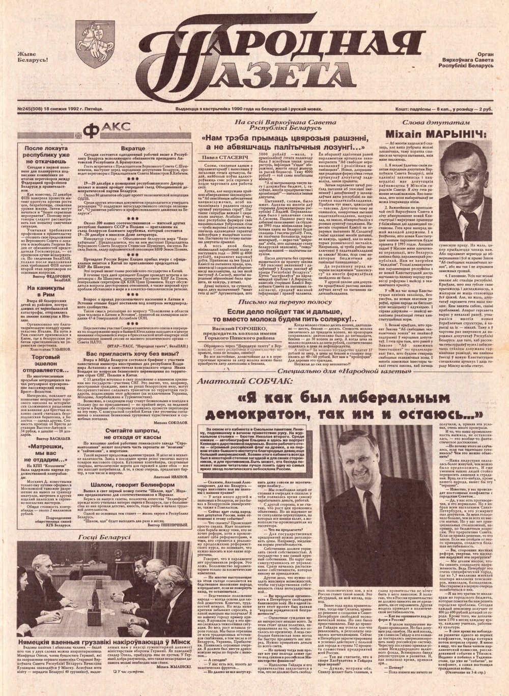 Народная газета 245 (508) 1992