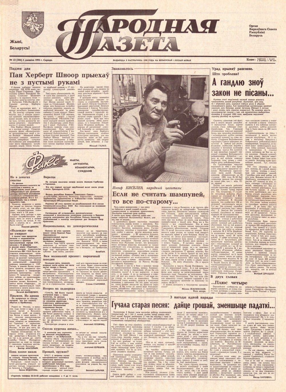 «Народная газета» — орган Вярхоўнага Савета Рэспублікі Беларусь. Выдавец: Адкрытае акцыянернае таварыства Народная газета. Выходзіць штодзённа, акрамя нядзелі і панядзелка, 250 разоў у год. Выдаецца з кастрычніка 1990 года на беларускай і рускай мовах. З 1990 па 1995 год пасаду галоўнага рэдактара «Народнай газеты» займаў Іосіф Сярэдзіч. З мая 1990 па студзень 1996 — дэпутат Вярхоўнага Савета XII склікання. Выданне займала ўмераную цэнтрысцкую пазыцыю, імкнучыся адлюстраваць палітычныя погляды большасці грамадзян. 17 сакавіка 1995 г. Указам № 113 Аляксандр Лукашэнка прызначыў галоўным рэдактарам «Народнай газеты» Мікалая Галко, не зважаючы на тое, што правам прызначаць галоўнага рэдактара сваёй уласнай газеты валодаў толькі Вярхоўны савет.