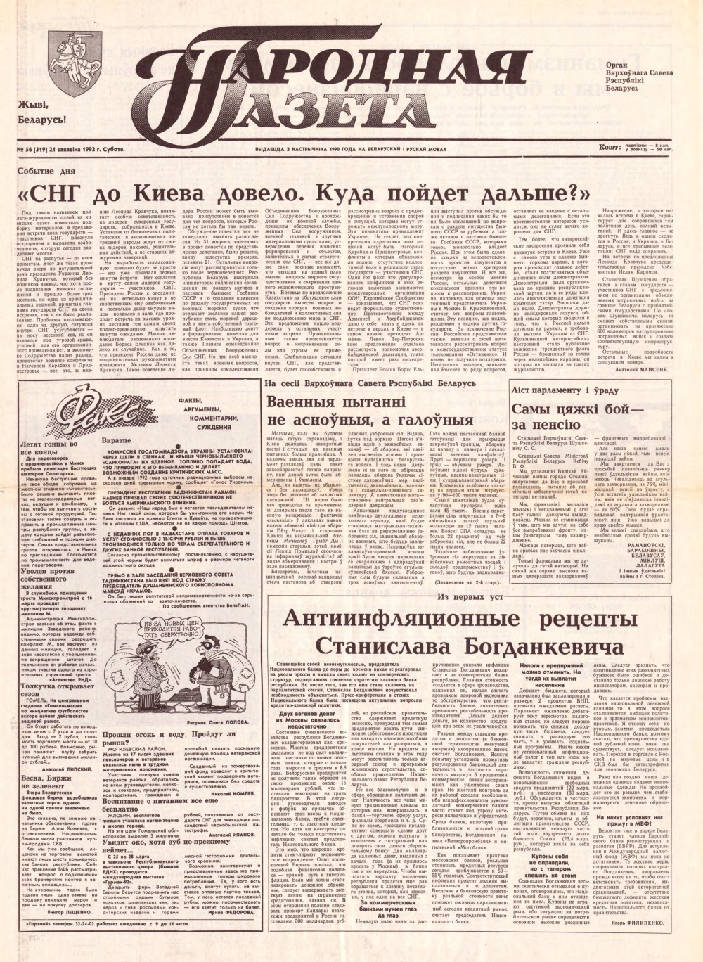 «Народная газета» — орган Вярхоўнага Савета Рэспублікі Беларусь. Выдавец: Адкрытае акцыянернае таварыства Народная газета. Выходзіць штодзённа, акрамя нядзелі і панядзелка, 250 разоў у год. Выдаецца з кастрычніка 1990 года на беларускай і рускай мовах. З 1990 па 1995 год пасаду галоўнага рэдактара «Народнай газеты» займаў Іосіф Сярэдзіч. З мая 1990 па студзень 1996 — дэпутат Вярхоўнага Савета XII склікання. Выданне займала ўмераную цэнтрысцкую пазыцыю, імкнучыся адлюстраваць палітычныя погляды большасці грамадзян. 17 сакавіка 1995 г. Указам № 113 Аляксандр Лукашэнка прызначыў галоўным рэдактарам «Народнай газеты» Мікалая Галко, не зважаючы на тое, што правам прызначаць галоўнага рэдактара сваёй уласнай газеты валодаў толькі Вярхоўны савет.