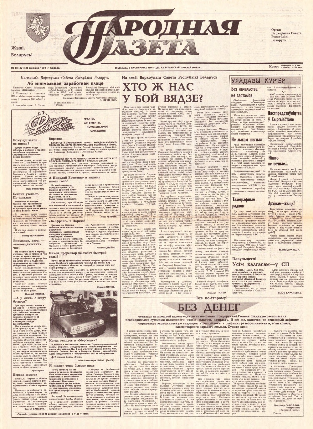 «Народная газета» — орган Вярхоўнага Савета Рэспублікі Беларусь. Выдавец: Адкрытае акцыянернае таварыства Народная газета. Выходзіць штодзённа, акрамя нядзелі і панядзелка, 250 разоў у год. Выдаецца з кастрычніка 1990 года на беларускай і рускай мовах. З 1990 па 1995 год пасаду галоўнага рэдактара «Народнай газеты» займаў Іосіф Сярэдзіч. З мая 1990 па студзень 1996 — дэпутат Вярхоўнага Савета XII склікання. Выданне займала ўмераную цэнтрысцкую пазыцыю, імкнучыся адлюстраваць палітычныя погляды большасці грамадзян. 17 сакавіка 1995 г. Указам № 113 Аляксандр Лукашэнка прызначыў галоўным рэдактарам «Народнай газеты» Мікалая Галко, не зважаючы на тое, што правам прызначаць галоўнага рэдактара сваёй уласнай газеты валодаў толькі Вярхоўны савет.