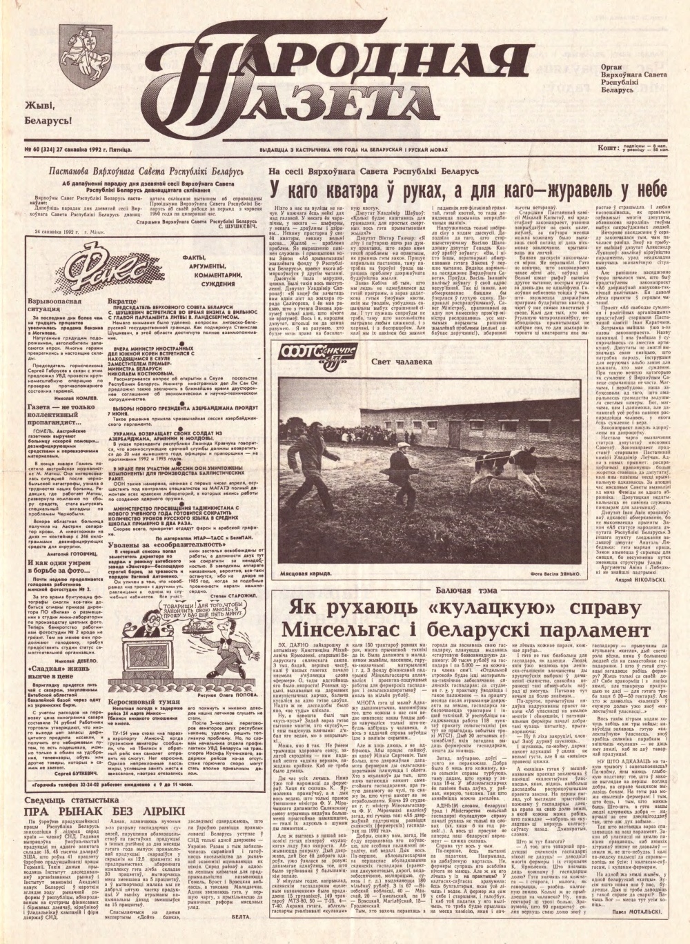 «Народная газета» — орган Вярхоўнага Савета Рэспублікі Беларусь. Выдавец: Адкрытае акцыянернае таварыства Народная газета. Выходзіць штодзённа, акрамя нядзелі і панядзелка, 250 разоў у год. Выдаецца з кастрычніка 1990 года на беларускай і рускай мовах. З 1990 па 1995 год пасаду галоўнага рэдактара «Народнай газеты» займаў Іосіф Сярэдзіч. З мая 1990 па студзень 1996 — дэпутат Вярхоўнага Савета XII склікання. Выданне займала ўмераную цэнтрысцкую пазыцыю, імкнучыся адлюстраваць палітычныя погляды большасці грамадзян. 17 сакавіка 1995 г. Указам № 113 Аляксандр Лукашэнка прызначыў галоўным рэдактарам «Народнай газеты» Мікалая Галко, не зважаючы на тое, што правам прызначаць галоўнага рэдактара сваёй уласнай газеты валодаў толькі Вярхоўны савет.