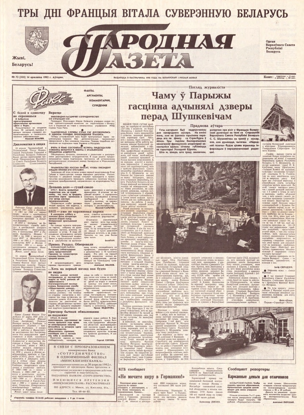 «Народная газета» — орган Вярхоўнага Савета Рэспублікі Беларусь. Выдавец: Адкрытае акцыянернае таварыства Народная газета. Выходзіць штодзённа, акрамя нядзелі і панядзелка, 250 разоў у год. Выдаецца з кастрычніка 1990 года на беларускай і рускай мовах. З 1990 па 1995 год пасаду галоўнага рэдактара «Народнай газеты» займаў Іосіф Сярэдзіч. З мая 1990 па студзень 1996 — дэпутат Вярхоўнага Савета XII склікання. Выданне займала ўмераную цэнтрысцкую пазыцыю, імкнучыся адлюстраваць палітычныя погляды большасці грамадзян. 17 сакавіка 1995 г. Указам № 113 Аляксандр Лукашэнка прызначыў галоўным рэдактарам «Народнай газеты» Мікалая Галко, не зважаючы на тое, што правам прызначаць галоўнага рэдактара сваёй уласнай газеты валодаў толькі Вярхоўны савет.