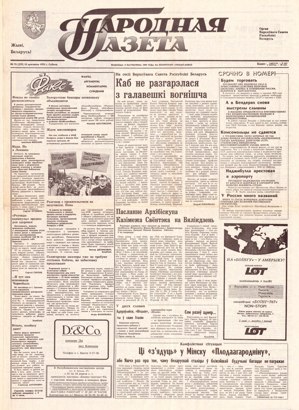 «Народная газета» — орган Вярхоўнага Савета Рэспублікі Беларусь. Выдавец: Адкрытае акцыянернае таварыства Народная газета. Выходзіць штодзённа, акрамя нядзелі і панядзелка, 250 разоў у год. Выдаецца з кастрычніка 1990 года на беларускай і рускай мовах. З 1990 па 1995 год пасаду галоўнага рэдактара «Народнай газеты» займаў Іосіф Сярэдзіч. З мая 1990 па студзень 1996 — дэпутат Вярхоўнага Савета XII склікання. Выданне займала ўмераную цэнтрысцкую пазыцыю, імкнучыся адлюстраваць палітычныя погляды большасці грамадзян. 17 сакавіка 1995 г. Указам № 113 Аляксандр Лукашэнка прызначыў галоўным рэдактарам «Народнай газеты» Мікалая Галко, не зважаючы на тое, што правам прызначаць галоўнага рэдактара сваёй уласнай газеты валодаў толькі Вярхоўны савет.