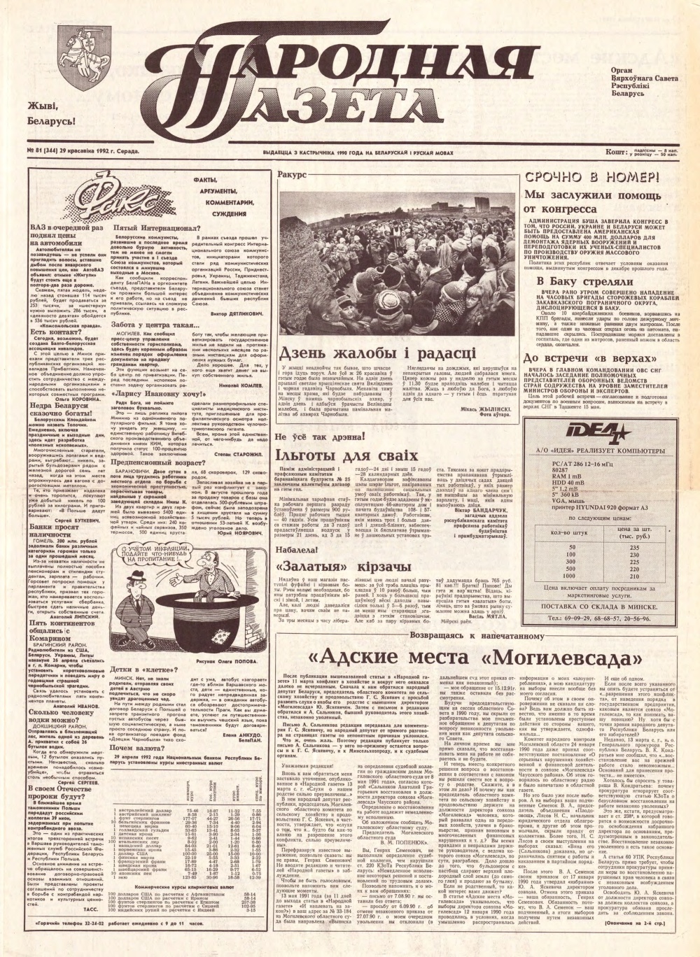 «Народная газета» — орган Вярхоўнага Савета Рэспублікі Беларусь. Выдавец: Адкрытае акцыянернае таварыства Народная газета. Выходзіць штодзённа, акрамя нядзелі і панядзелка, 250 разоў у год. Выдаецца з кастрычніка 1990 года на беларускай і рускай мовах. З 1990 па 1995 год пасаду галоўнага рэдактара «Народнай газеты» займаў Іосіф Сярэдзіч. З мая 1990 па студзень 1996 — дэпутат Вярхоўнага Савета XII склікання. Выданне займала ўмераную цэнтрысцкую пазыцыю, імкнучыся адлюстраваць палітычныя погляды большасці грамадзян. 17 сакавіка 1995 г. Указам № 113 Аляксандр Лукашэнка прызначыў галоўным рэдактарам «Народнай газеты» Мікалая Галко, не зважаючы на тое, што правам прызначаць галоўнага рэдактара сваёй уласнай газеты валодаў толькі Вярхоўны савет.