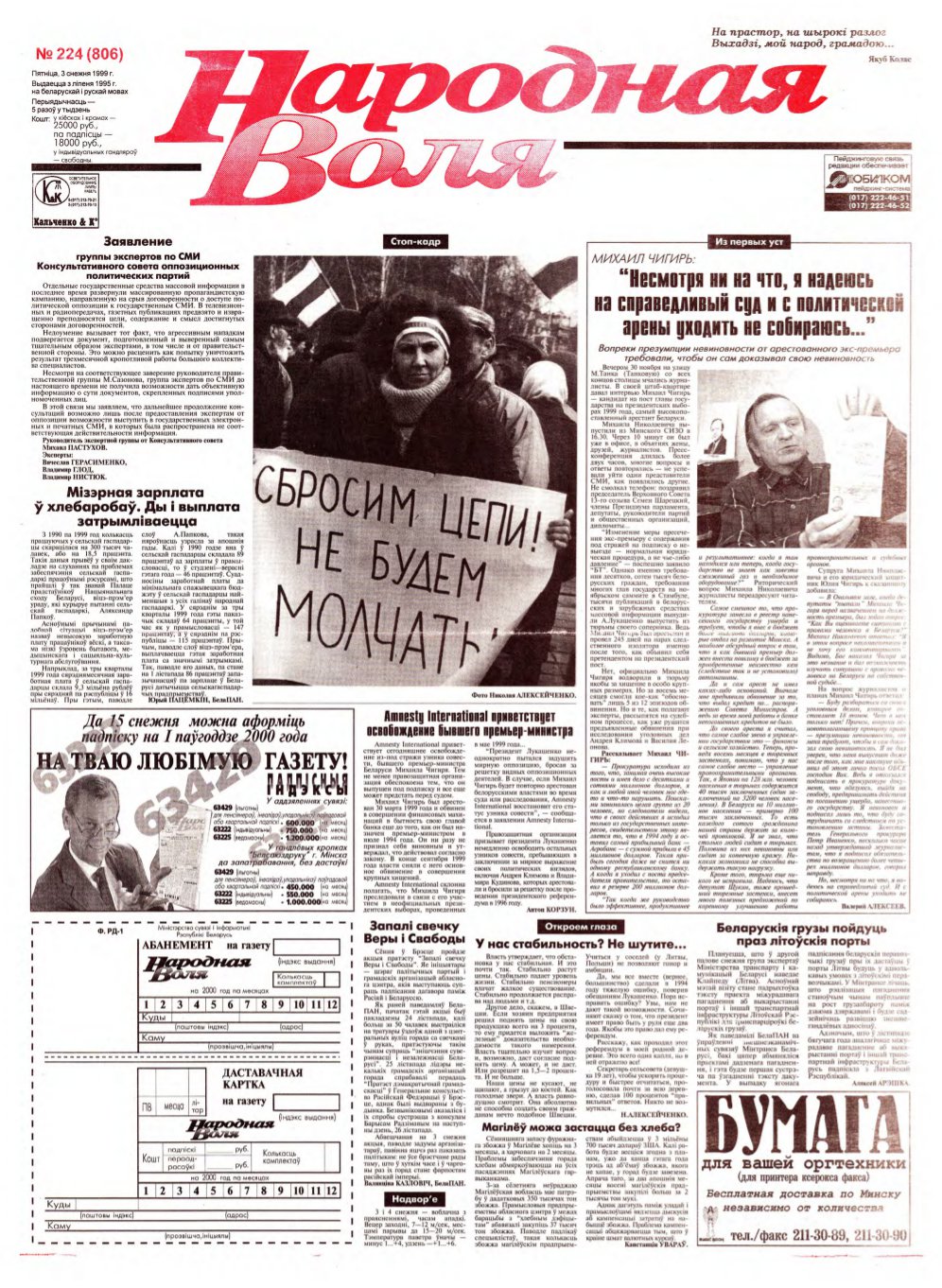 Народная Воля 224 (806) 1999