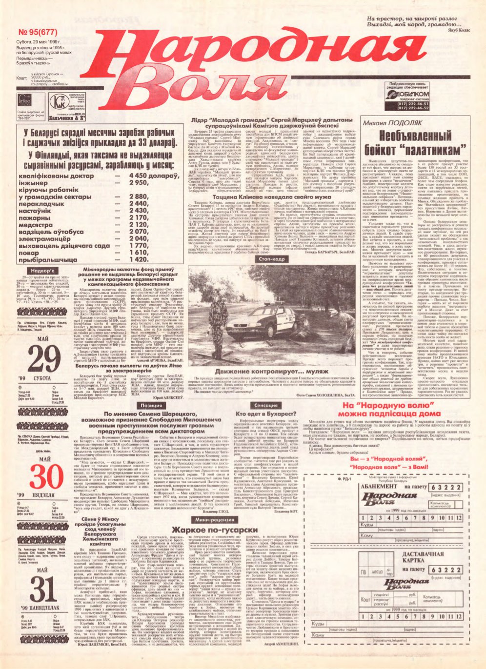 «Народная Воля» — беларуская грамадска-палітычная газета, выдаецца з ліпеня 1995 года на беларускай і рускай мовах. Перыядычнасць - 5 разоў у тыдзень. Створана Іосіфам Сярэдзічам, які дагэтуль працаваў галоўным рэдактарам «Народнай газеты» — афіцыйнай газеты Вярхоўнага Савета Рэспублікі Беларусь (законнага парламента). Газета займала ўмераную цэнтрысцкую пазіцыю, імкнучыся адлюстраваць палітычныя погляды большасці грамадзян.