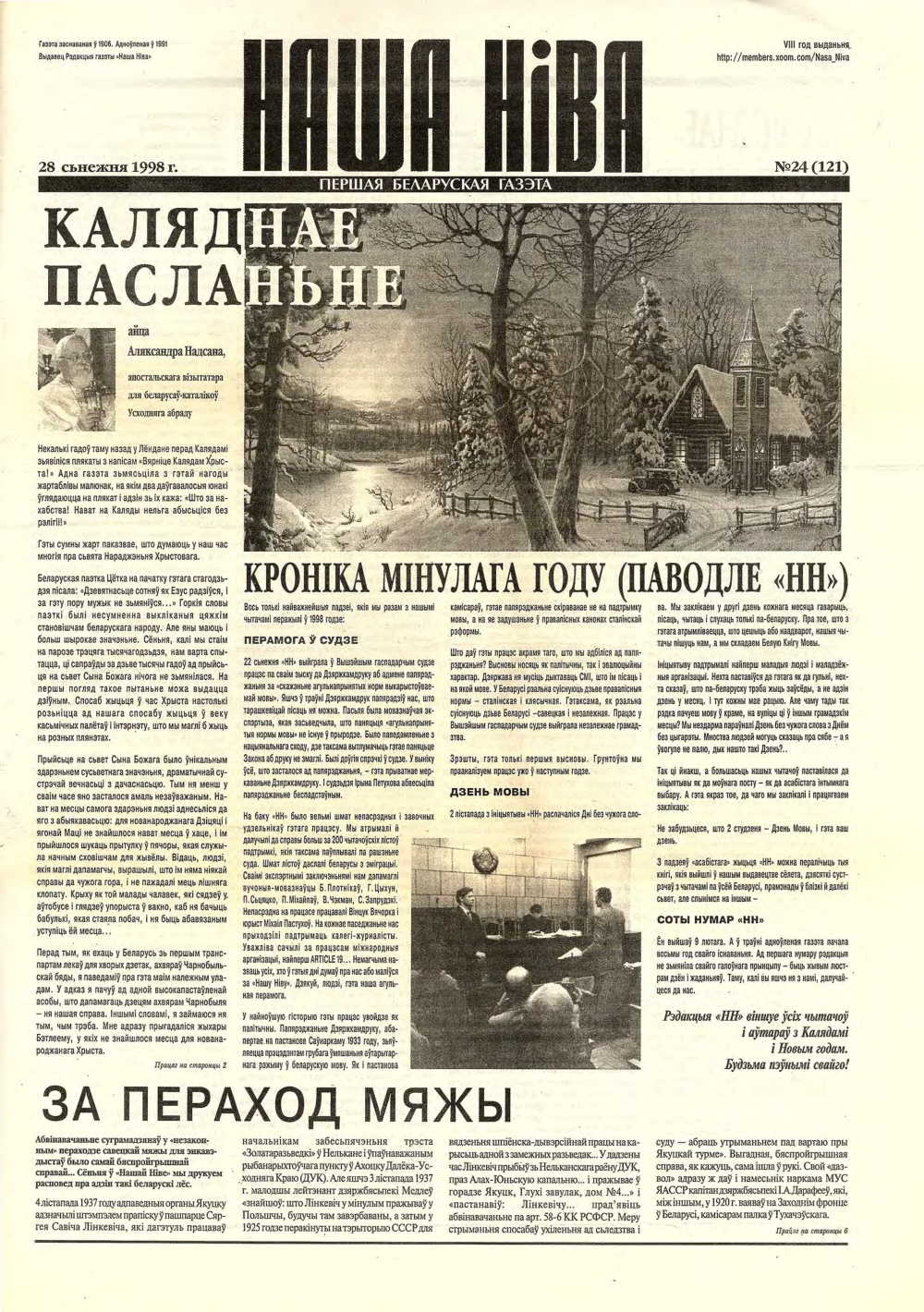 Газэта «Наша Ніва» была ўтвораная ў 1906 годзе, і спачатку фактычна была органам Беларускае Сацыялістычнае грамады. У 1991 годзе «Наша Ніва» была адроджаная ў Вільні, галоўным рэдактарам стаў Сяргей Дубавец. Адроджаная газэта зноў стала галоўным выданьнем нацыянальнай інтэлігенцыі, побач з навінамі публікуючы літаратурныя творы, эсэ. У 1996 годзе было прынятае рашэньне пра перанясеньне рэдакцыі ў Менск і трансфармацыі «Нашай Нівы» з выданьня літаратурна-інтэлектуальнага ў выданьне грамадзка-палітычнага характару. Ад 1999 году газэта вяртаецца да штотыднёвае пэрыядычнасьці. Ад 2000 году рэдактарства ў «Нашай Ніве» пераймае Андрэй Дынько. Ад 2002 году аб’ём газэты павялічваецца з 12 да 16 старонак, ад 2005 году — да 24-х. Паралельна з папяровым выданьнем з 1997 году існуе інтэрнэт-сайт газэты. (www.be-x-old.wikipedia.org)