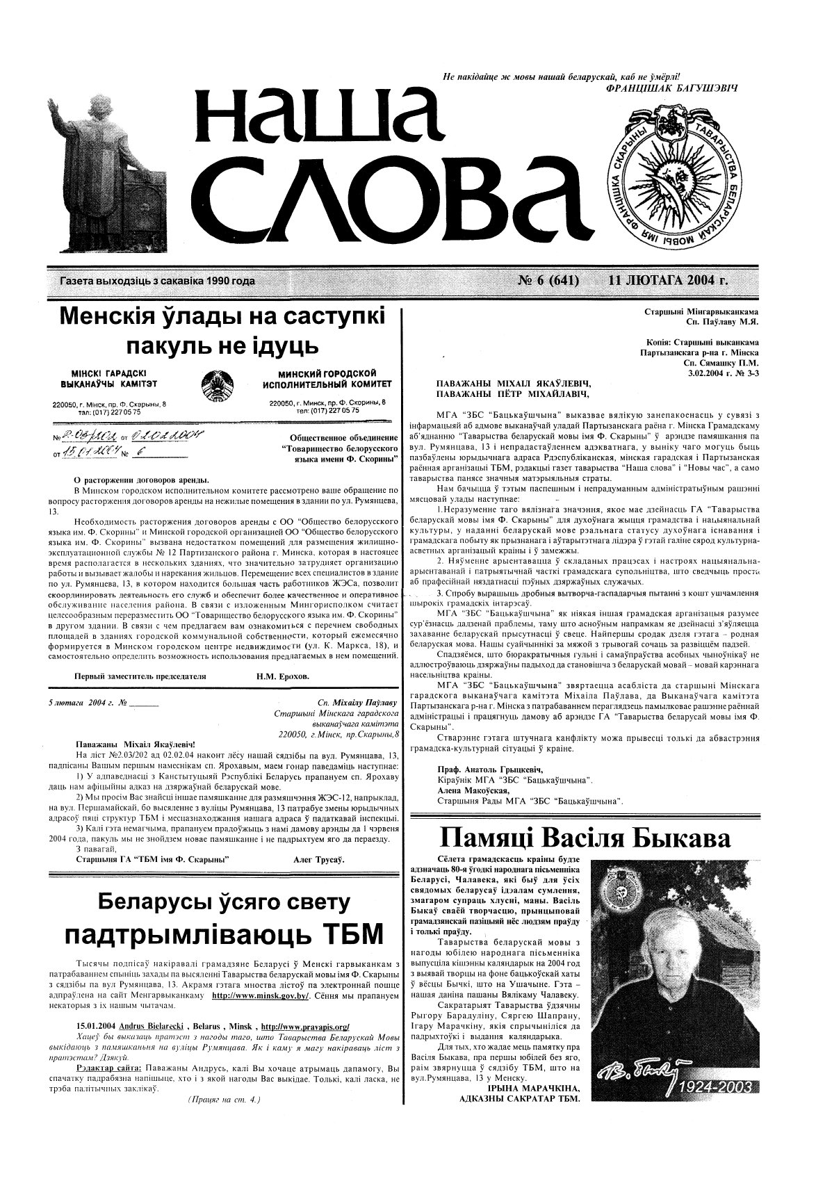 Газета “Наша слова” - газета Грамадскага аб’яднання “ТБМ імя Ф. Скарыны”, якое знаходзіцца на пярэднім краі барацьбы за нацыянальнае адраджэнне беларускага этнасу. Газета заснавана ў сакавіку 1990 года і да 1997 года выходзіла ў Менску. З лістапада 1997 года газета больш за 9 гадоў выдавалася Лідскай гарадской арганізацыя ГА “ТБМ імя Ф. Скарыны”. З 1 лютага 2007 года выдаўцом газеты “Наша слова” з’яўляецца Установа інфармацыі “Выдавецкі дом ТБМ”, зарэгістраваная ў Лідзе Гарадзенскай вобласці. Рэдактар газеты з 1997 года Станіслаў Суднік, сябар Беларускай асацыяцыі журналістаў і Саюза беларускіх пісьменнікаў. У рэдкалегію газеты ўваходзяць знакавыя людзі Беларусі - навукоўцы, пісьменнікі, грамадскія актывісты. Газета друкуе афіцыйную хроніку дзейнасці Таварыства беларускай мовы імя Ф. Скарыны і асвятляе дзейнасць іншых грамадскіх арганізацый дэмакратычнага кірунку а таксама асноўныя падзеі культурнага і грамадскага жыцця краіны. Сярод аўтараў не адзін дзесятак дактароў і кандыдатаў навук, здараюцца акадэмікі. Газета з’яўляецца пілотнай структурай у арганізацыі шматлікіх кампаній па зборы подпісаў з самай рознай нагоды, друкуе звароты, бланкі, а грамадзяне збіраюць подпісы і атакуюць уладу ці то па пытаннях мовы, па пытаннях адукацыі, культуры, ці то па пытаннях назову і пераназову вуліцаў. Гэтыя кампаніі ТБМ вядзе бесперапынна, трымаючы ўладныя структуры пад пастаянным ціскам і дабіваючыся перманентных поспехаў па розных кірунках. Усё гэта без газеты было б немагчыма.