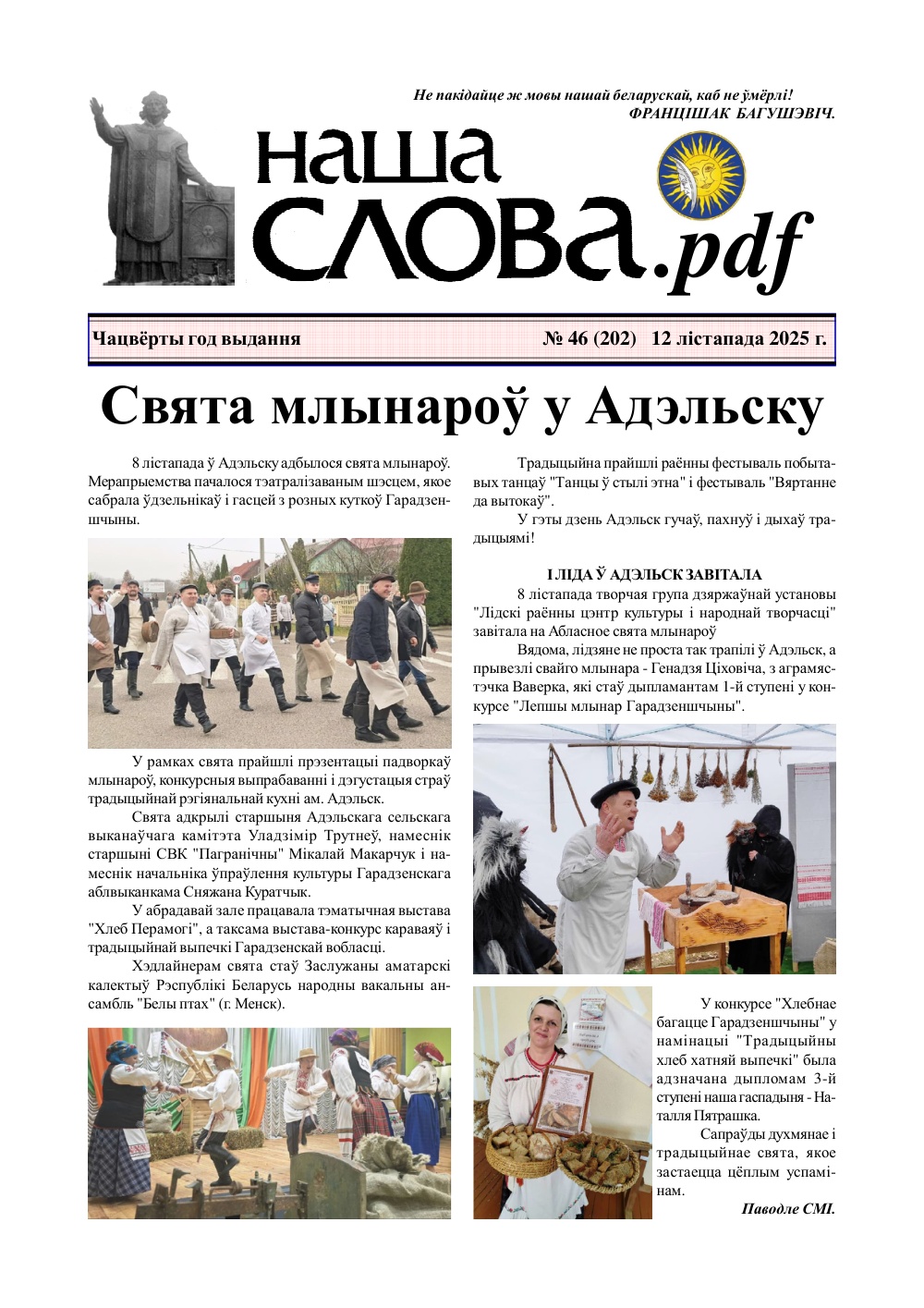 «Наша слова» — штотыднёвая газета. Змяшчае інфармацыйныя, публіцыстычныя, гістарычныя, палемічныя, агітацыйныя і мовазнаўчыя матэрыялы па праблемах беларускай мовы і культуры.