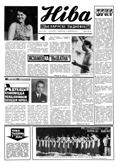 «Ніва» — штотыднёвая газета, якая выдаецца на беларускай мове ў Беластоку. Газета была заснавана ў 1956 Беларускім грамадска-культурным таварыствам. Зараз яе выдае Праграмная рада тыднёвіка «Ніва». Газета асвятляе штодзённае жыццё беларусаў у Польшчы, дзейнасць грамадскіх арганізацый, друкуе матэрыялы па краязнаўстве, змяшчае артыкулы, прысвечаныя актуальным падзеям на Беларусі. Выходзіць старонка для дзяцей «Зорка», перыядычна змяшчаюцца тэматычныя ўкладкі. Газета сталася важным чыннікам яднання беларускага насельніцтва ў Польшчы. Цяпер газэта выдаецца Праграмнай радай тыднёвіка беларусаў у Польшчы «Ніва».