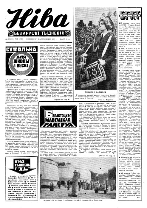 «Ніва» — штотыднёвая газета, якая выдаецца на беларускай мове ў Беластоку. Газета была заснавана ў 1956 Беларускім грамадска-культурным таварыствам. Зараз яе выдае Праграмная рада тыднёвіка «Ніва». Газета асвятляе штодзённае жыццё беларусаў у Польшчы, дзейнасць грамадскіх арганізацый, друкуе матэрыялы па краязнаўстве, змяшчае артыкулы, прысвечаныя актуальным падзеям на Беларусі. Выходзіць старонка для дзяцей «Зорка», перыядычна змяшчаюцца тэматычныя ўкладкі. Газета сталася важным чыннікам яднання беларускага насельніцтва ў Польшчы. Цяпер газэта выдаецца Праграмнай радай тыднёвіка беларусаў у Польшчы «Ніва».