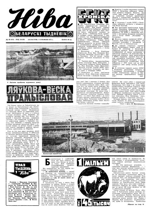 «Ніва» — штотыднёвая газета, якая выдаецца на беларускай мове ў Беластоку. Газета была заснавана ў 1956 Беларускім грамадска-культурным таварыствам. Зараз яе выдае Праграмная рада тыднёвіка «Ніва». Газета асвятляе штодзённае жыццё беларусаў у Польшчы, дзейнасць грамадскіх арганізацый, друкуе матэрыялы па краязнаўстве, змяшчае артыкулы, прысвечаныя актуальным падзеям на Беларусі. Выходзіць старонка для дзяцей «Зорка», перыядычна змяшчаюцца тэматычныя ўкладкі. Газета сталася важным чыннікам яднання беларускага насельніцтва ў Польшчы. Цяпер газэта выдаецца Праграмнай радай тыднёвіка беларусаў у Польшчы «Ніва».
