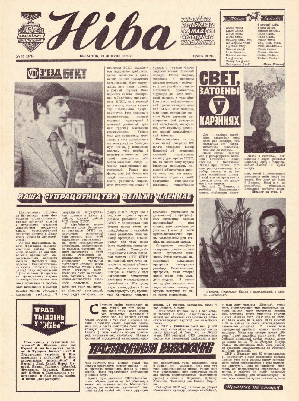 «Ніва» — штотыднёвая газета, якая выдаецца на беларускай мове ў Беластоку. Газета была заснавана ў 1956 Беларускім грамадска-культурным таварыствам. Зараз яе выдае Праграмная рада тыднёвіка «Ніва». Газета асвятляе штодзённае жыццё беларусаў у Польшчы, дзейнасць грамадскіх арганізацый, друкуе матэрыялы па краязнаўстве, змяшчае артыкулы, прысвечаныя актуальным падзеям на Беларусі. Выходзіць старонка для дзяцей «Зорка», перыядычна змяшчаюцца тэматычныя ўкладкі. Газета сталася важным чыннікам яднання беларускага насельніцтва ў Польшчы. Цяпер газэта выдаецца Праграмнай радай тыднёвіка беларусаў у Польшчы «Ніва».