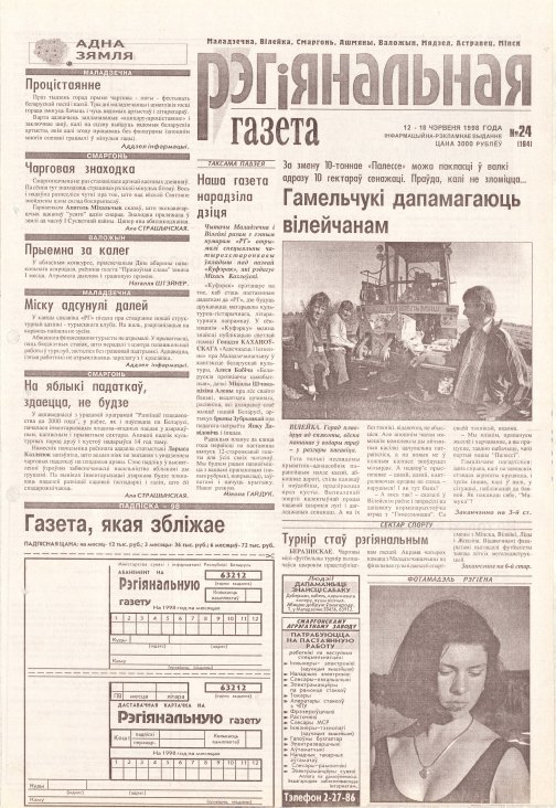 • Copyright: © 1997-2019 by Рэгіянальная газета