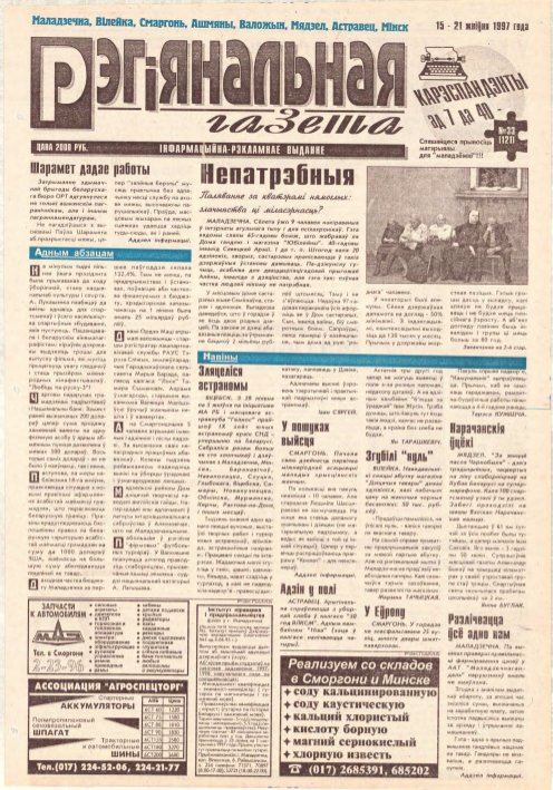 • Copyright: © 1997-2019 by Рэгіянальная газета