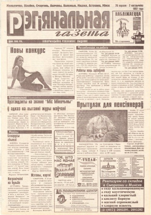 • Copyright: © 1997-2019 by Рэгіянальная газета