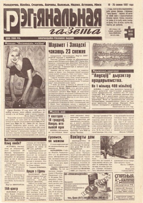 • Copyright: © 1997-2019 by Рэгіянальная газета