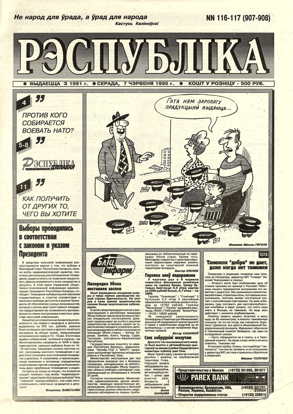 «Рэспубліка» — газета для тых, хто самастойна прымае рашэнні. Заснавальнік - Савет Міністраў Рэспублікі Беларусь. Выдаецца з чэрвеня 1991. Газета выходзіць 250 разоў у год. Аўтары апублікаваных матэрыялаў нясуць адказнасць за падбор і дакладнасць фактаў, іх меркаванні неабавязкова адлюстроўваюць пункт гледжання рэдакцыі. Рукапісы, фотаздымкі і малюнкі не рэцэнзуюцца і не вяртаюцца.
