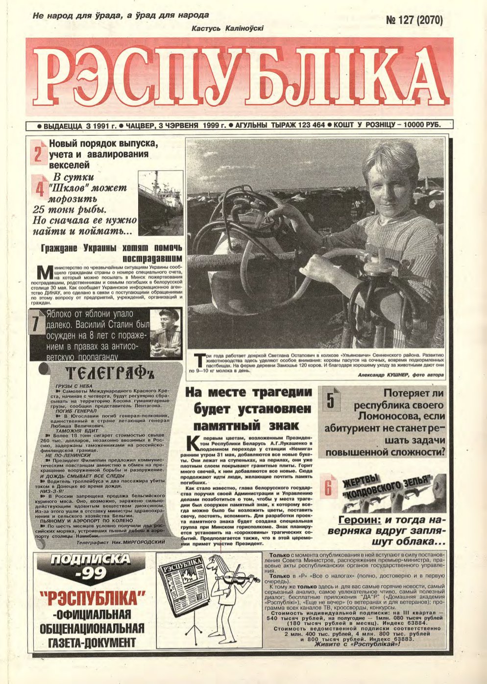 «Рэспубліка» — газета для тых, хто самастойна прымае рашэнні. Заснавальнік - Савет Міністраў Рэспублікі Беларусь. Выдаецца з чэрвеня 1991. Газета выходзіць 250 разоў у год. Аўтары апублікаваных матэрыялаў нясуць адказнасць за падбор і дакладнасць фактаў, іх меркаванні неабавязкова адлюстроўваюць пункт гледжання рэдакцыі. Рукапісы, фотаздымкі і малюнкі не рэцэнзуюцца і не вяртаюцца.