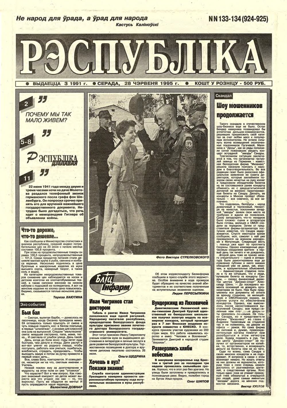 «Рэспубліка» — газета для тых, хто самастойна прымае рашэнні. Заснавальнік - Савет Міністраў Рэспублікі Беларусь. Выдаецца з чэрвеня 1991. Газета выходзіць 250 разоў у год. Аўтары апублікаваных матэрыялаў нясуць адказнасць за падбор і дакладнасць фактаў, іх меркаванні неабавязкова адлюстроўваюць пункт гледжання рэдакцыі. Рукапісы, фотаздымкі і малюнкі не рэцэнзуюцца і не вяртаюцца.