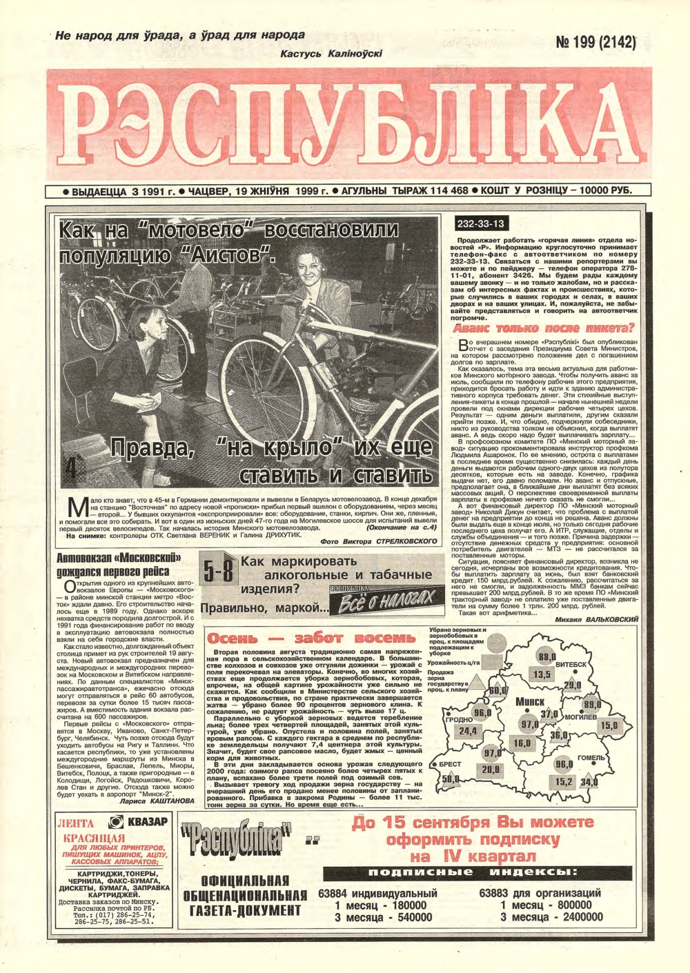 «Рэспубліка» — газета для тых, хто самастойна прымае рашэнні. Заснавальнік - Савет Міністраў Рэспублікі Беларусь. Выдаецца з чэрвеня 1991. Газета выходзіць 250 разоў у год. Аўтары апублікаваных матэрыялаў нясуць адказнасць за падбор і дакладнасць фактаў, іх меркаванні неабавязкова адлюстроўваюць пункт гледжання рэдакцыі. Рукапісы, фотаздымкі і малюнкі не рэцэнзуюцца і не вяртаюцца.