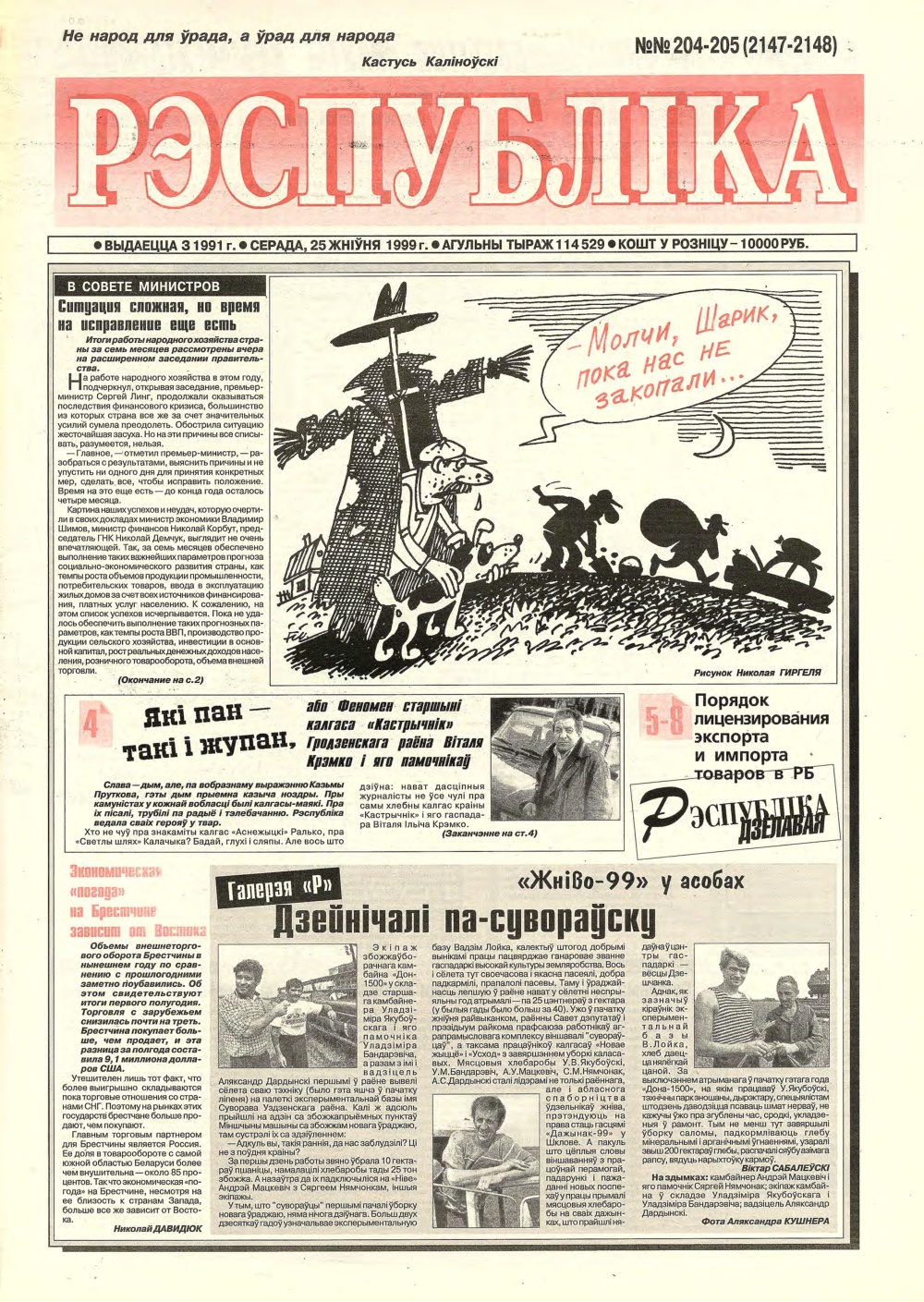«Рэспубліка» — газета для тых, хто самастойна прымае рашэнні. Заснавальнік - Савет Міністраў Рэспублікі Беларусь. Выдаецца з чэрвеня 1991. Газета выходзіць 250 разоў у год. Аўтары апублікаваных матэрыялаў нясуць адказнасць за падбор і дакладнасць фактаў, іх меркаванні неабавязкова адлюстроўваюць пункт гледжання рэдакцыі. Рукапісы, фотаздымкі і малюнкі не рэцэнзуюцца і не вяртаюцца.