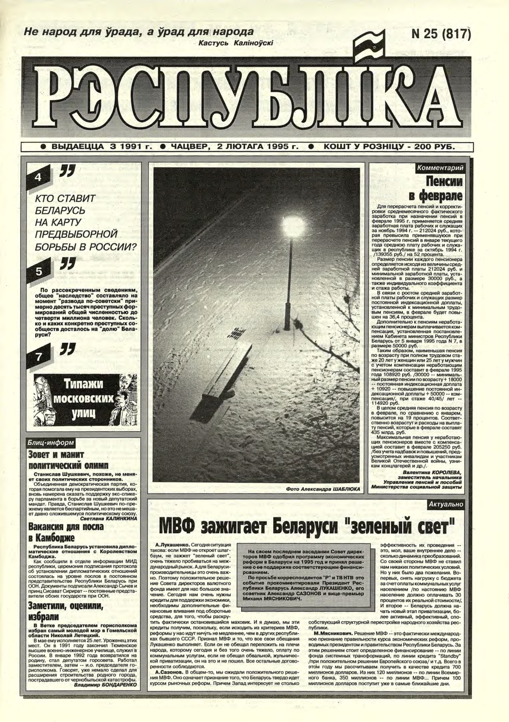 «Рэспубліка» — газета для тых, хто самастойна прымае рашэнні. Заснавальнік - Савет Міністраў Рэспублікі Беларусь. Выдаецца з чэрвеня 1991. Газета выходзіць 250 разоў у год. Аўтары апублікаваных матэрыялаў нясуць адказнасць за падбор і дакладнасць фактаў, іх меркаванні неабавязкова адлюстроўваюць пункт гледжання рэдакцыі. Рукапісы, фотаздымкі і малюнкі не рэцэнзуюцца і не вяртаюцца.