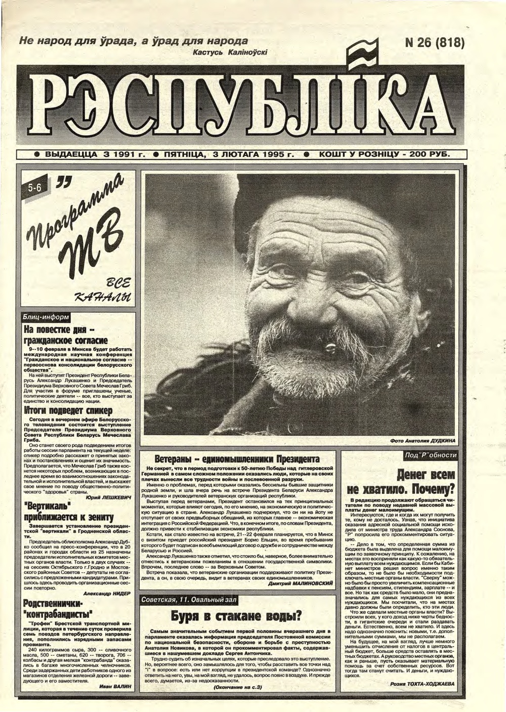 «Рэспубліка» — газета для тых, хто самастойна прымае рашэнні. Заснавальнік - Савет Міністраў Рэспублікі Беларусь. Выдаецца з чэрвеня 1991. Газета выходзіць 250 разоў у год. Аўтары апублікаваных матэрыялаў нясуць адказнасць за падбор і дакладнасць фактаў, іх меркаванні неабавязкова адлюстроўваюць пункт гледжання рэдакцыі. Рукапісы, фотаздымкі і малюнкі не рэцэнзуюцца і не вяртаюцца.