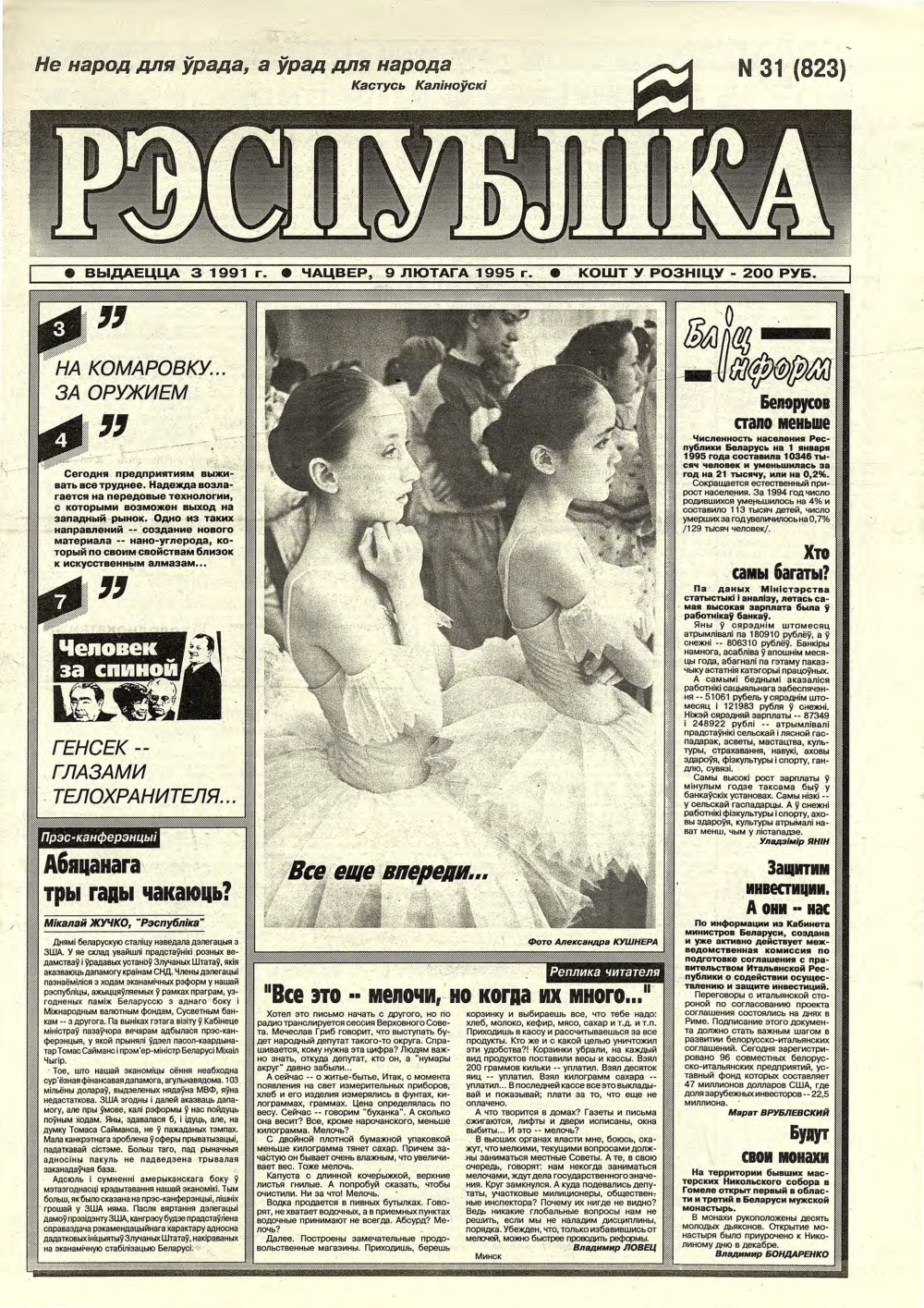 «Рэспубліка» — газета для тых, хто самастойна прымае рашэнні. Заснавальнік - Савет Міністраў Рэспублікі Беларусь. Выдаецца з чэрвеня 1991. Газета выходзіць 250 разоў у год. Аўтары апублікаваных матэрыялаў нясуць адказнасць за падбор і дакладнасць фактаў, іх меркаванні неабавязкова адлюстроўваюць пункт гледжання рэдакцыі. Рукапісы, фотаздымкі і малюнкі не рэцэнзуюцца і не вяртаюцца.