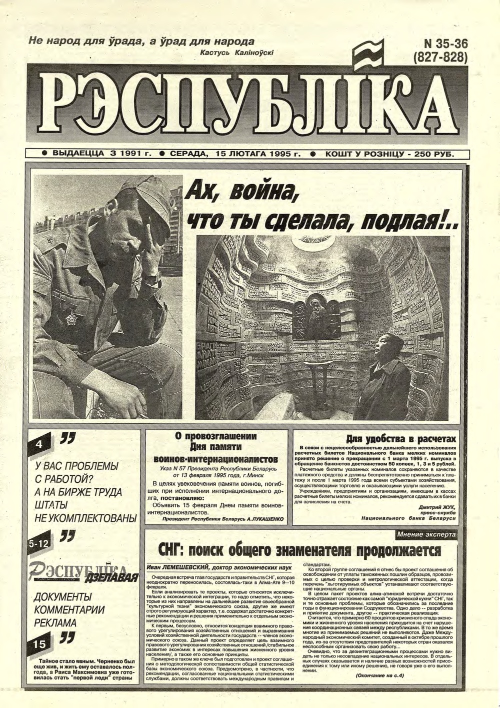 «Рэспубліка» — газета для тых, хто самастойна прымае рашэнні. Заснавальнік - Савет Міністраў Рэспублікі Беларусь. Выдаецца з чэрвеня 1991. Газета выходзіць 250 разоў у год. Аўтары апублікаваных матэрыялаў нясуць адказнасць за падбор і дакладнасць фактаў, іх меркаванні неабавязкова адлюстроўваюць пункт гледжання рэдакцыі. Рукапісы, фотаздымкі і малюнкі не рэцэнзуюцца і не вяртаюцца.