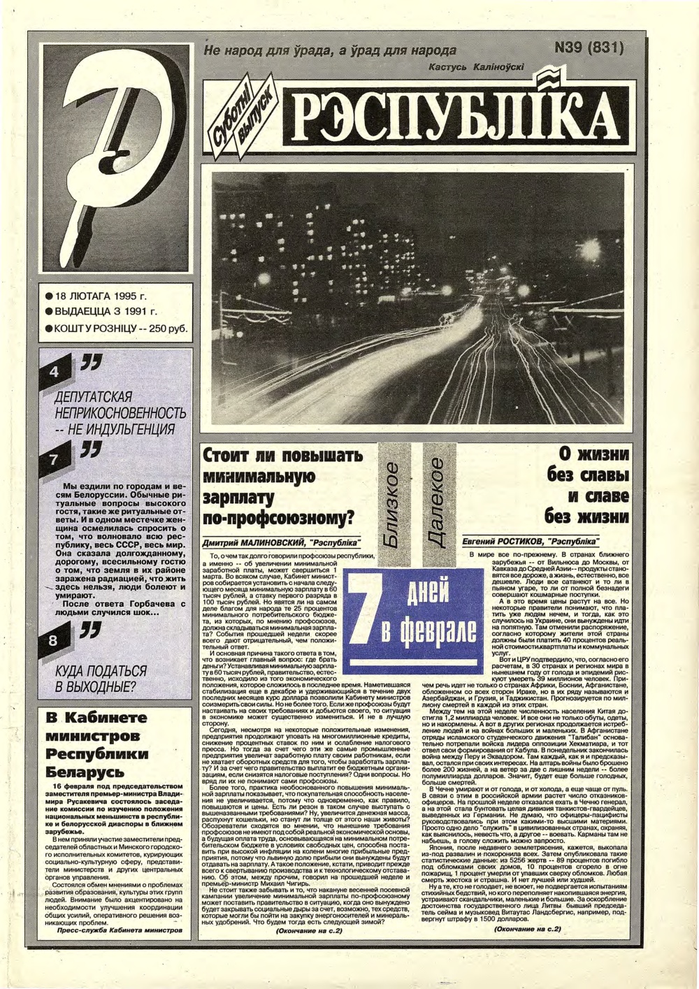 «Рэспубліка» — газета для тых, хто самастойна прымае рашэнні. Заснавальнік - Савет Міністраў Рэспублікі Беларусь. Выдаецца з чэрвеня 1991. Газета выходзіць 250 разоў у год. Аўтары апублікаваных матэрыялаў нясуць адказнасць за падбор і дакладнасць фактаў, іх меркаванні неабавязкова адлюстроўваюць пункт гледжання рэдакцыі. Рукапісы, фотаздымкі і малюнкі не рэцэнзуюцца і не вяртаюцца.