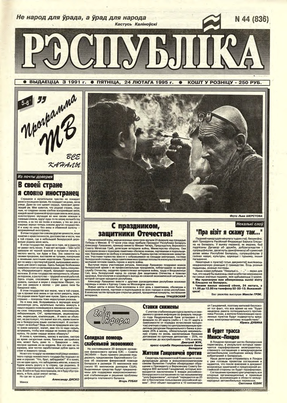 «Рэспубліка» — газета для тых, хто самастойна прымае рашэнні. Заснавальнік - Савет Міністраў Рэспублікі Беларусь. Выдаецца з чэрвеня 1991. Газета выходзіць 250 разоў у год. Аўтары апублікаваных матэрыялаў нясуць адказнасць за падбор і дакладнасць фактаў, іх меркаванні неабавязкова адлюстроўваюць пункт гледжання рэдакцыі. Рукапісы, фотаздымкі і малюнкі не рэцэнзуюцца і не вяртаюцца.