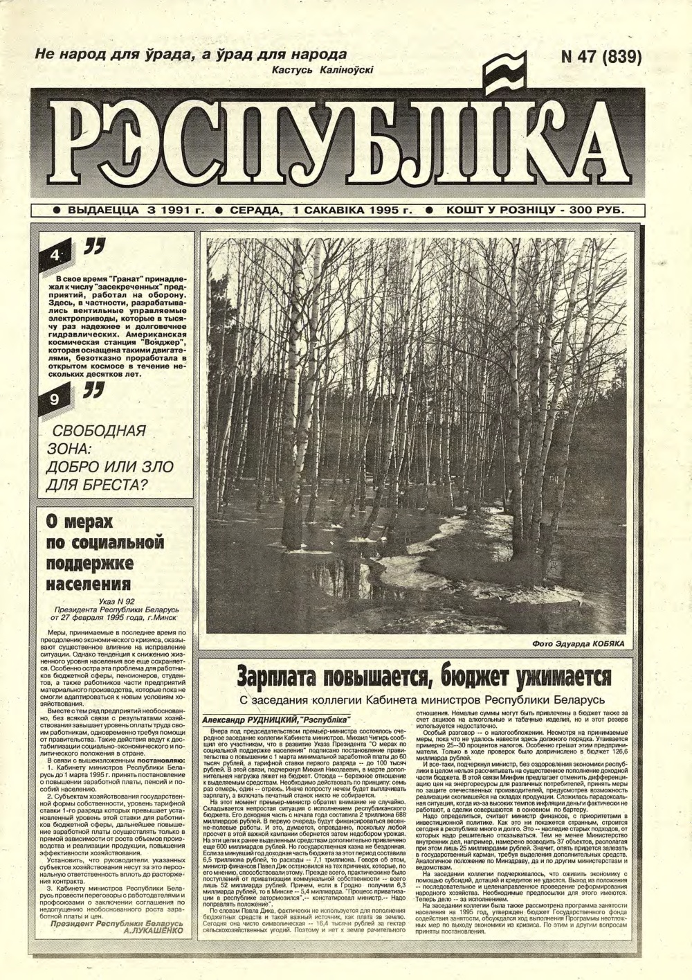 «Рэспубліка» — газета для тых, хто самастойна прымае рашэнні. Заснавальнік - Савет Міністраў Рэспублікі Беларусь. Выдаецца з чэрвеня 1991. Газета выходзіць 250 разоў у год. Аўтары апублікаваных матэрыялаў нясуць адказнасць за падбор і дакладнасць фактаў, іх меркаванні неабавязкова адлюстроўваюць пункт гледжання рэдакцыі. Рукапісы, фотаздымкі і малюнкі не рэцэнзуюцца і не вяртаюцца.