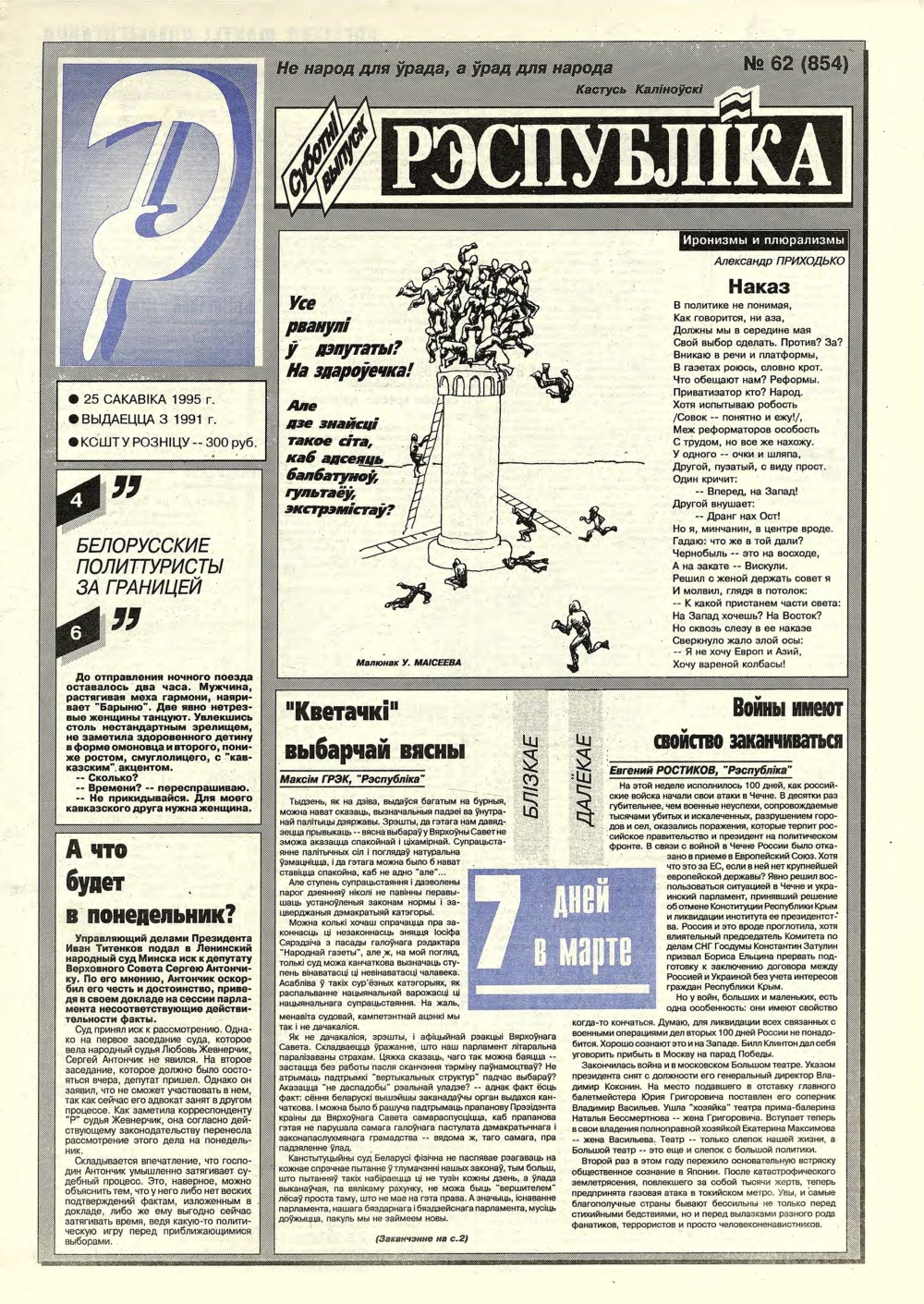 «Рэспубліка» — газета для тых, хто самастойна прымае рашэнні. Заснавальнік - Савет Міністраў Рэспублікі Беларусь. Выдаецца з чэрвеня 1991. Газета выходзіць 250 разоў у год. Аўтары апублікаваных матэрыялаў нясуць адказнасць за падбор і дакладнасць фактаў, іх меркаванні неабавязкова адлюстроўваюць пункт гледжання рэдакцыі. Рукапісы, фотаздымкі і малюнкі не рэцэнзуюцца і не вяртаюцца.