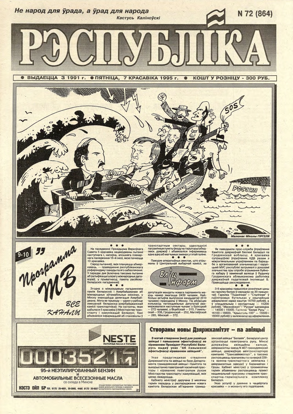 «Рэспубліка» — газета для тых, хто самастойна прымае рашэнні. Заснавальнік - Савет Міністраў Рэспублікі Беларусь. Выдаецца з чэрвеня 1991. Газета выходзіць 250 разоў у год. Аўтары апублікаваных матэрыялаў нясуць адказнасць за падбор і дакладнасць фактаў, іх меркаванні неабавязкова адлюстроўваюць пункт гледжання рэдакцыі. Рукапісы, фотаздымкі і малюнкі не рэцэнзуюцца і не вяртаюцца.