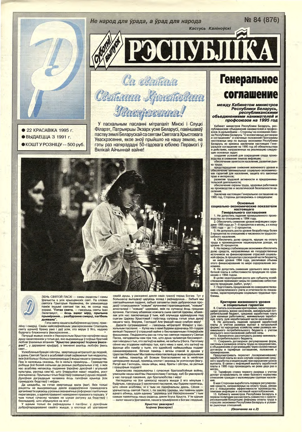 «Рэспубліка» — газета для тых, хто самастойна прымае рашэнні. Заснавальнік - Савет Міністраў Рэспублікі Беларусь. Выдаецца з чэрвеня 1991. Газета выходзіць 250 разоў у год. Аўтары апублікаваных матэрыялаў нясуць адказнасць за падбор і дакладнасць фактаў, іх меркаванні неабавязкова адлюстроўваюць пункт гледжання рэдакцыі. Рукапісы, фотаздымкі і малюнкі не рэцэнзуюцца і не вяртаюцца.