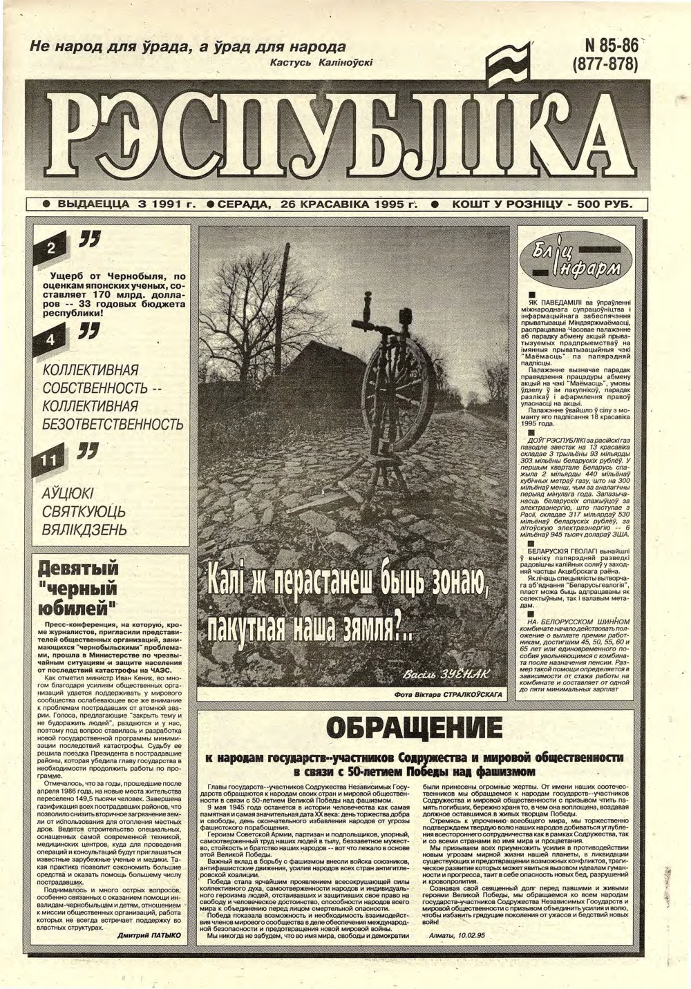 «Рэспубліка» — газета для тых, хто самастойна прымае рашэнні. Заснавальнік - Савет Міністраў Рэспублікі Беларусь. Выдаецца з чэрвеня 1991. Газета выходзіць 250 разоў у год. Аўтары апублікаваных матэрыялаў нясуць адказнасць за падбор і дакладнасць фактаў, іх меркаванні неабавязкова адлюстроўваюць пункт гледжання рэдакцыі. Рукапісы, фотаздымкі і малюнкі не рэцэнзуюцца і не вяртаюцца.